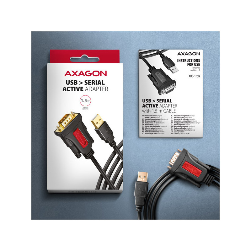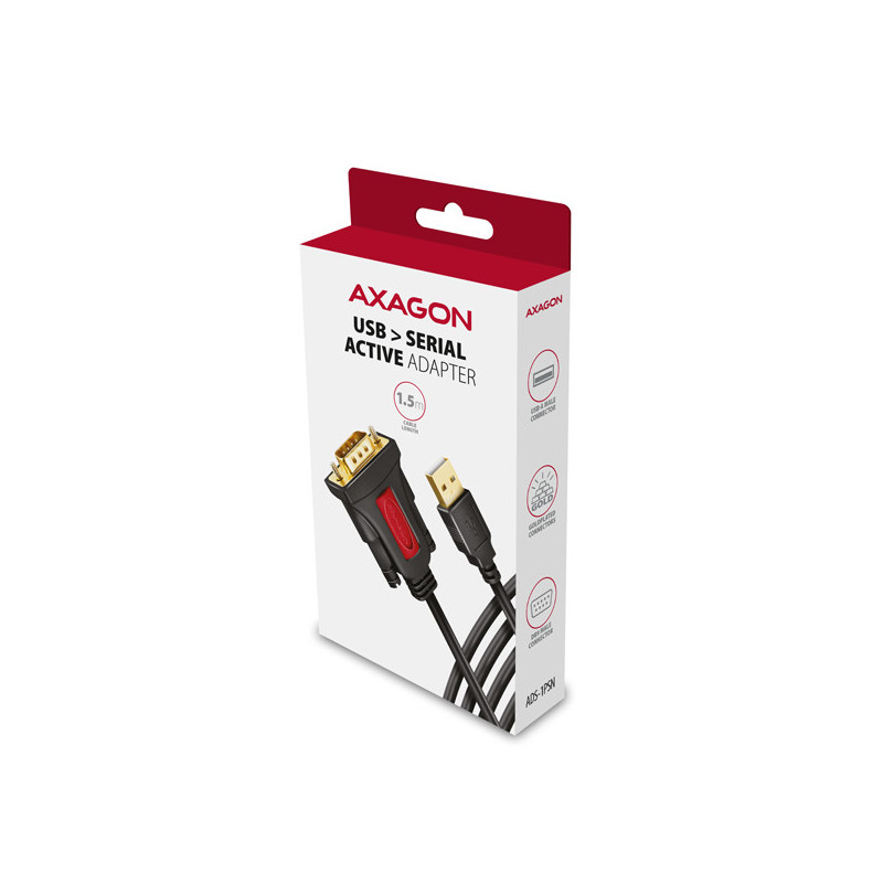 Aktivní USB převodník AXAGON ADS-1PSN snadno rozšíří počítač o sériový port standardu RS 232. Bezproblémová kompatibilita USB - serial RS232 adaptéru je dána použitím originálního čipu tchajwanské společnosti Prolific.