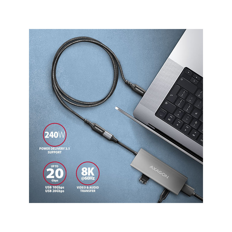 Prémiový prodlužovací USB-C <-> USB-C datový a nabíjecí AXAGON BUCM32-CF05AB SPEED+ EXTENSIONS USB 3.2 Gen 2 kabel s konektory USB-C male a USB-C female. Kabel je navržen pro velmi rychlé datové přenosy, přenos videa a nabíjení notebooků, telefonů, tabletů a dalších mobilních zařízení. Umožnuje vysokorychlostní prodloužení pro zařízení s krátkým kabelem např. multiportové huby a replikátory portů. Nebudete tak limitováni prostorem a umístěním portů na notebooku.