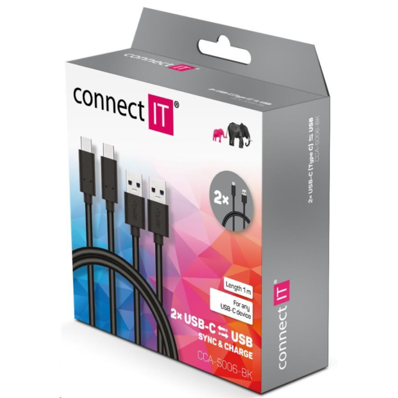 Kabel na nabíjení a přenost dat (USB-C - USB 3.0) v balení 2 kusů s podporou ultrarychlého nabíjení pomocí proudového toku 3 A