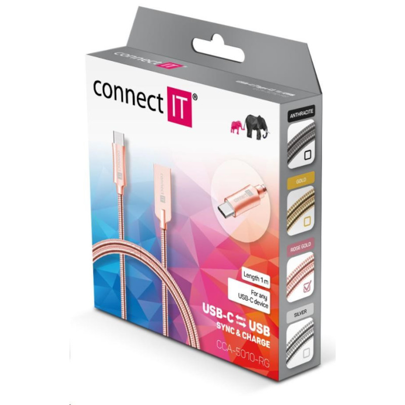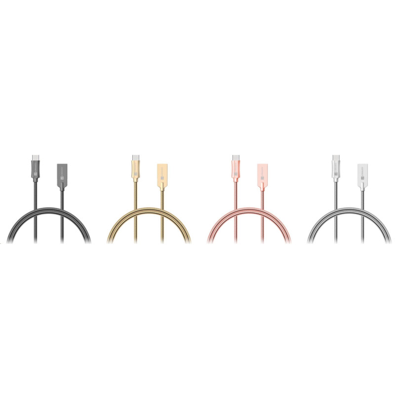 Kabel USB-C (Type C) -> USB-A v unikátním designu s flexibilním prémiovým opletem z vysoce kvalitní nerezové oceli SAE304 a podporou proudového toku 2,1 A pro rychlé nabíjení a přenos dat