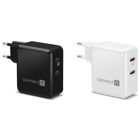 Cestovní USB nabíječka s technologií rychlonabíjení Qualcomm Quick Charge 3.0 určená pro napájení i nabíjení mobilních telefonů, tabletů, akčních kamer, elektronických čteček knih, MP3 přehrávačů, herních konzolí a mnoha dalších přenosných zařízení doma, v kanceláři i na cestách.