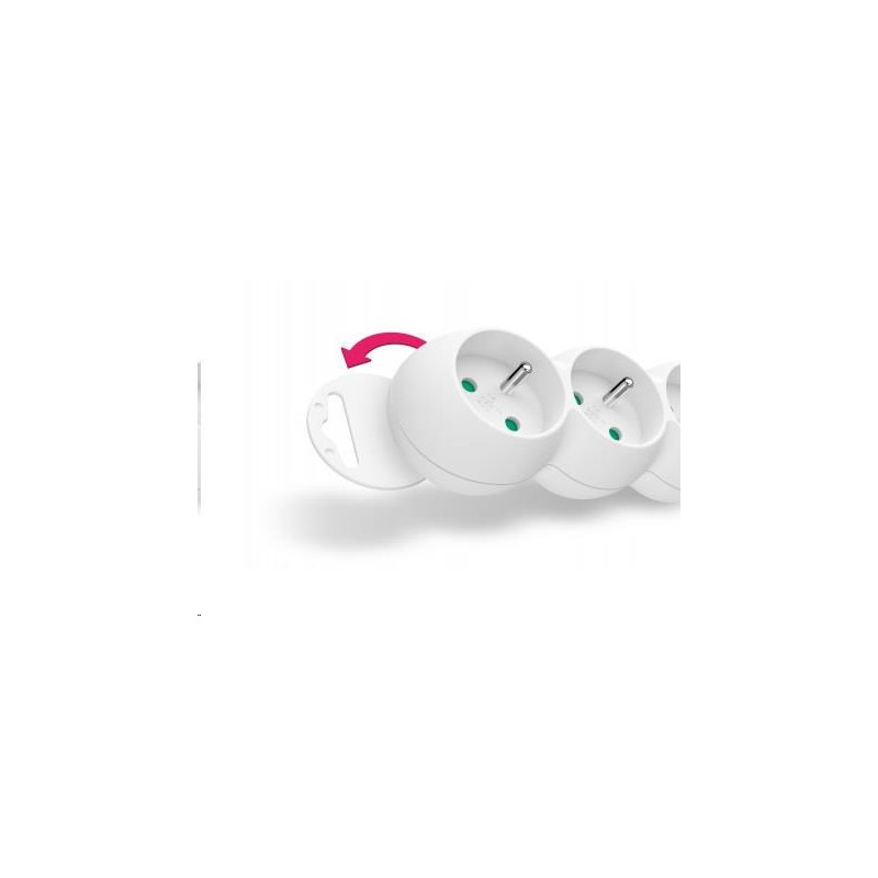 Díky pootočení zásuvek o 45° je možné používat i objemnější napájecí adaptéry nebo úhlové koncovky. Výsuvné očko v horní části zásuvkového modulu umožňuje zavěšení nebo pevnou instalaci na stěnu (s výhodou využijete např. v dílnách a garážích).