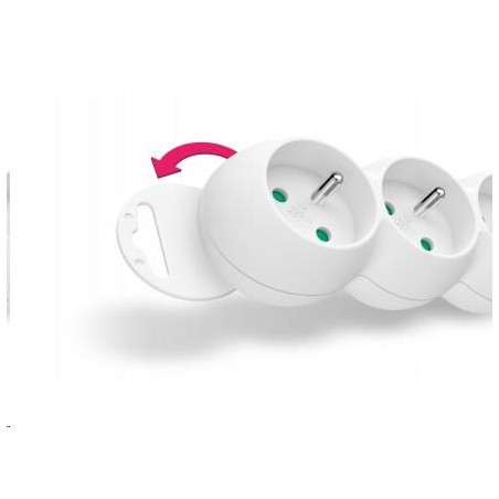 Díky pootočení zásuvek o 45° je možné používat i objemnější napájecí adaptéry nebo úhlové koncovky. Výsuvné očko v horní části zásuvkového modulu umožňuje zavěšení nebo pevnou instalaci na stěnu (s výhodou využijete např. v dílnách a garážích).