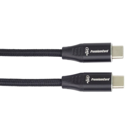 PremiumCord Kabel USB-C M/M, 240W 480Mbps černý bavlněný oplet, 1m