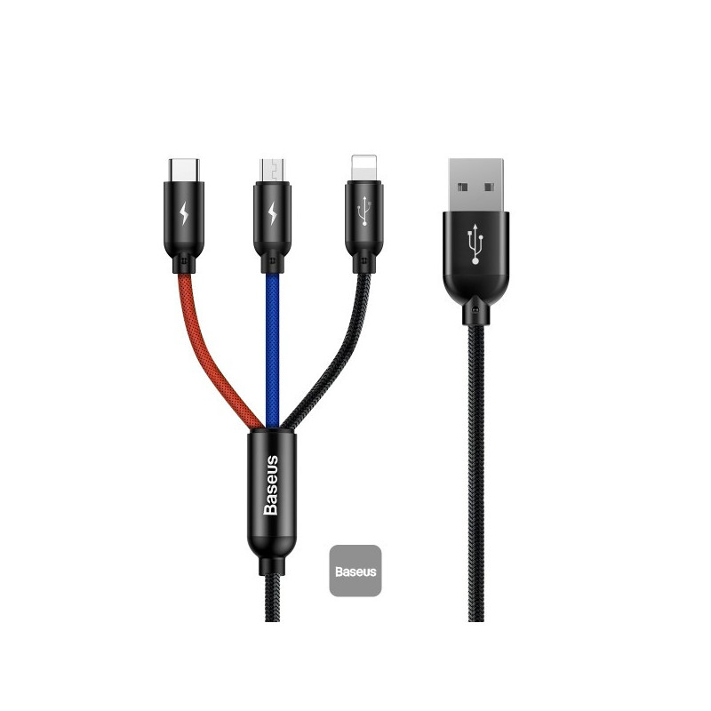 Baseus 3 in 1 Cable 3 Primary Colors Type C, Lightning , Micro 3A 1.2M