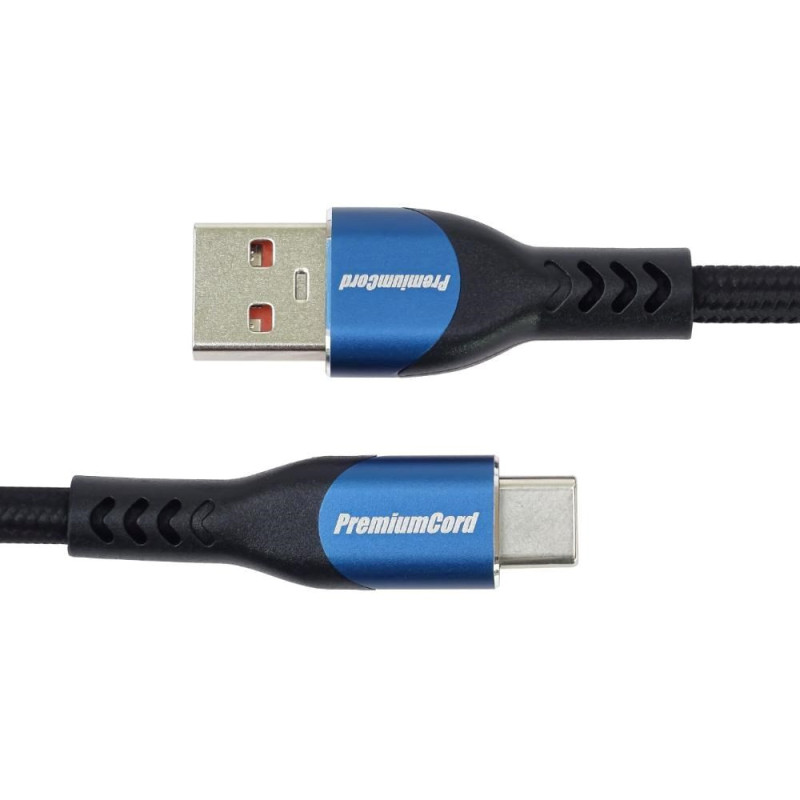 PremiumCord Super fast charging 5A kabel USB-C - USB 2.0 A bavlněný oplet a kovové hliníkové konektory 1,5m