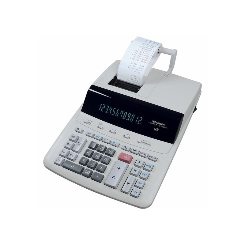 Nejnovější verze velmi populární tiskové kalkulačky Sharp CS-2635RH SE s 12místným digitron displejem, 2barevným tiskem, rychlostí 4,3 řádků/s, základními matematickými a pokročilými obchodními funkcemi a novou funkcí obnovení, která po automatickém vypnutí obnoví veškerá vložená data.