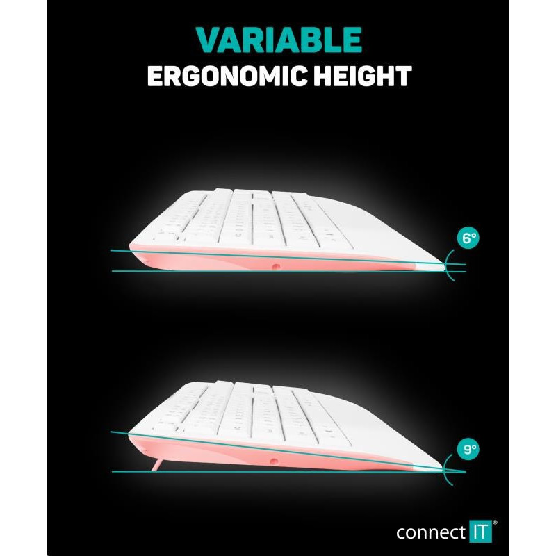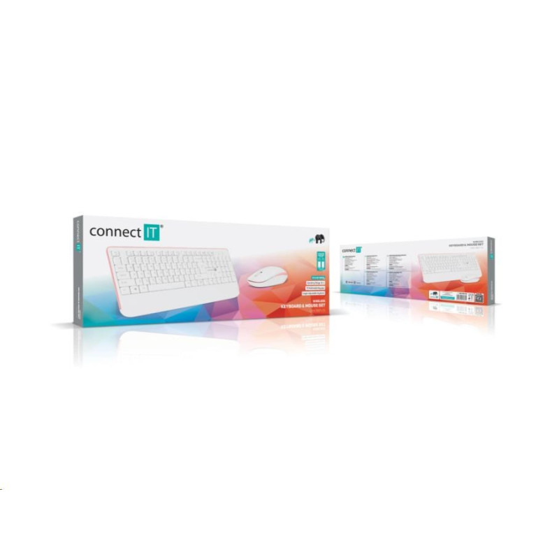 CONNECT IT Combo bezdrátová bílo-růžová klávesnice + myš, (+1x AAA +1x AA baterie zdarma), CZ + SK layout