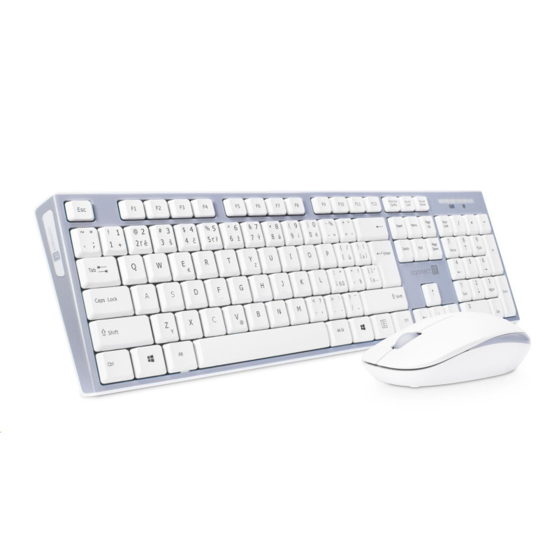 Bezdrátový set optické myši a tenké klávesnice v bílo-šedém designu