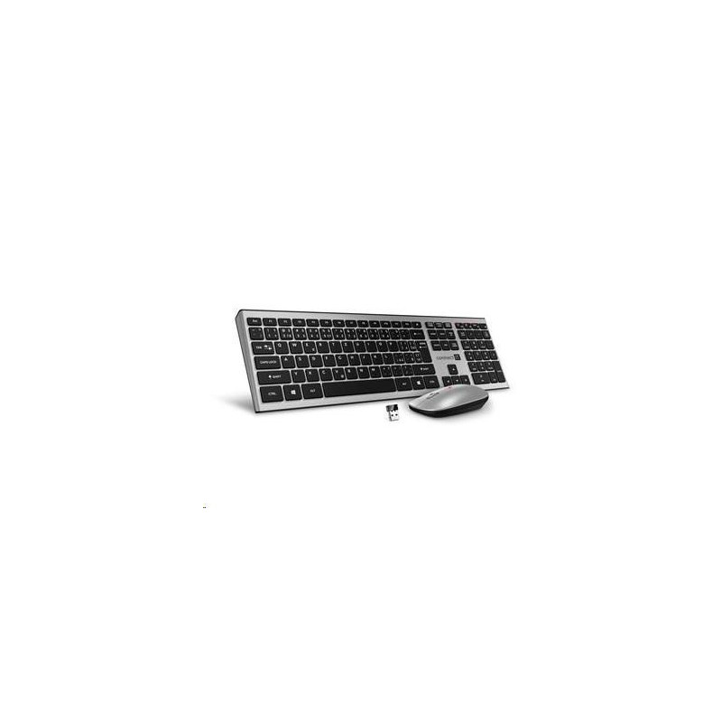 Bezdrátová klávesnice a optická myš ve stříbrném designu je ideální kombinace počítačového příslušenství, které si můžete vzít s sebou domů či do práce. Klávesnice nabízí 6 multimediálních kláves a myš s rozlišením 1200 DPI tak skvěle doplňuje jednoduchý a funkční set. Toto kvalitní příslušenství lehce připojíte k vašemu notebooku či počítači přes nano USB přijímač, který má dosah až 10 metrů. Samozřejmostí je velmi snadná instalace, díky Plug & Play.