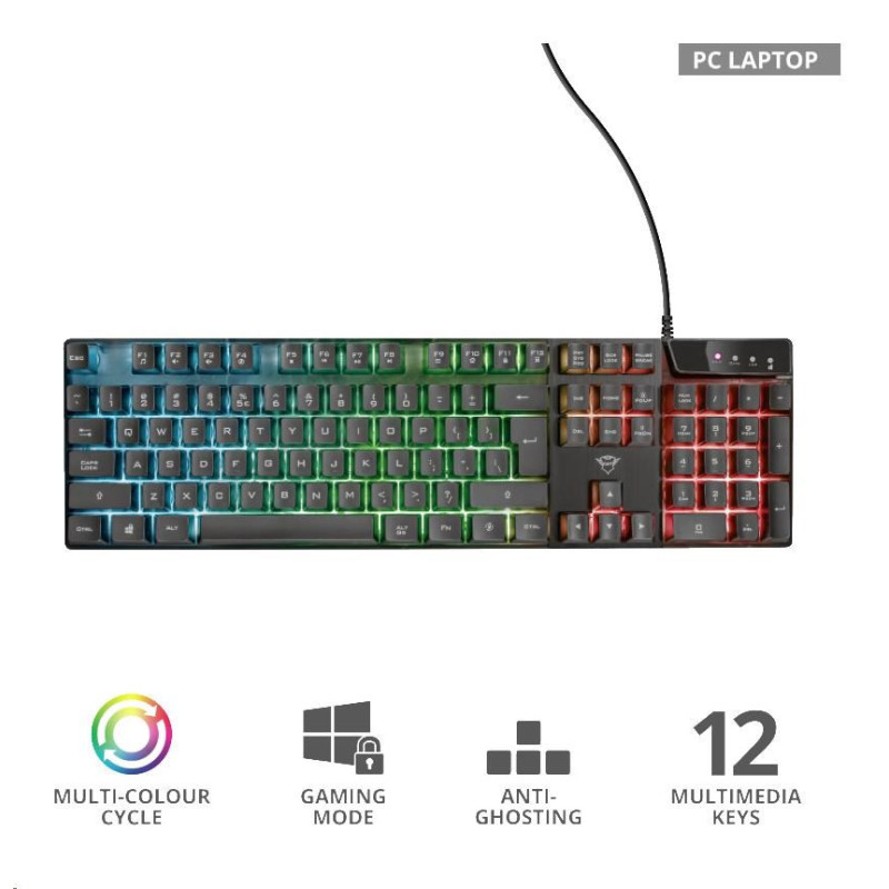 Herní klávesnice plné velikosti s osvětlením duhovými vlnami