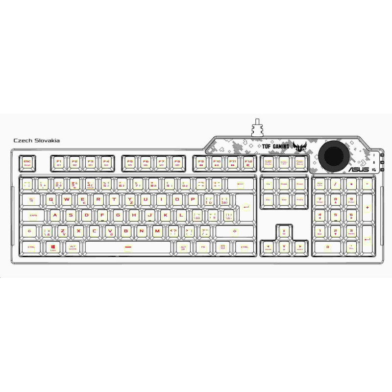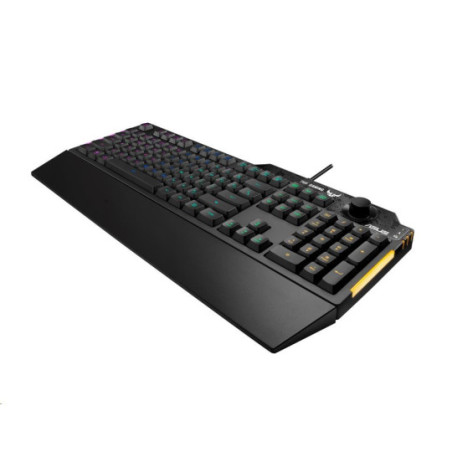 Klávesnice ASUS TUF Gaming K1 RGB s vyhrazeným ovladačem hlasitosti, odolností proti polití, boční světelnou lištou a Armory Crate