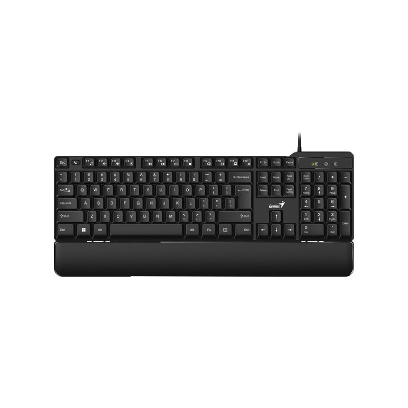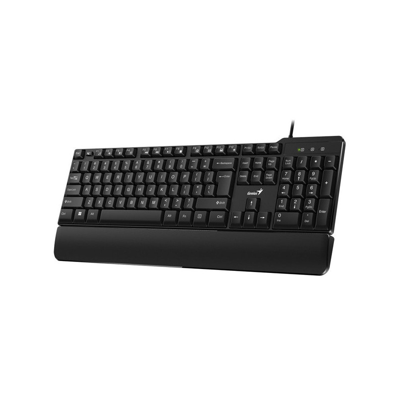 Klasická drátová klávesnice v černém provedení je navržena tak, aby uživateli poskytla maximální komfort při každodenní práci. Klávesnice je odolná proti polití a disponuje ergonomickou opěrkou dlaní. Připojení k počítači je realizováno skrze USB port.