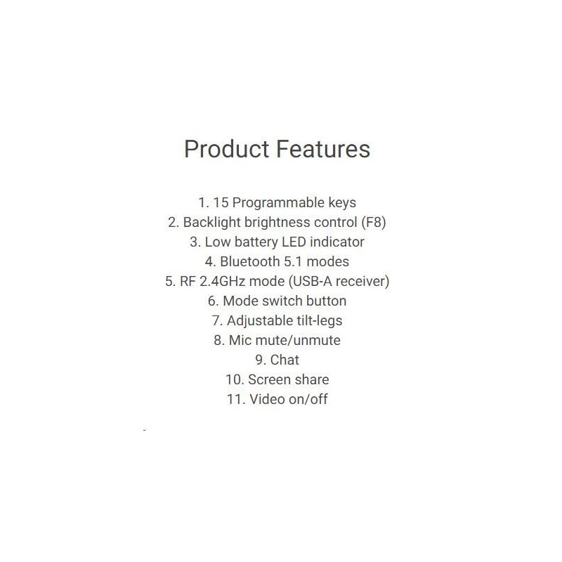 | Interface | 2.4 GHz, Bluetooth 5.1 |