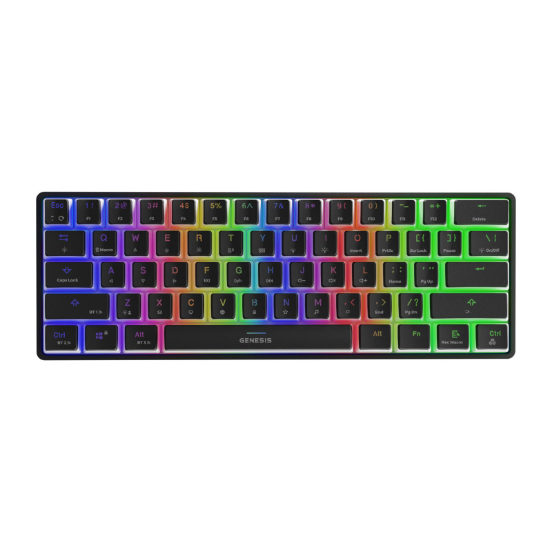 Genesis THOR 660 je bezdrátová mechanická klávesnice velikosti 60 % zkrácená o numerický blok, šipky a řadu funkčních kláves. Ultra rychlá doba odezvy spínačů The Gateron Brown přináší neuvěřitelný herní výkon a životnost až 50 milionů stisknutí, což je zárukou odolnosti na dlouhá léta. Působivé šasi v kombinaci s osvětlením RGB a efektem PRISMO dodá každé herní stanici profesionální vzhled.