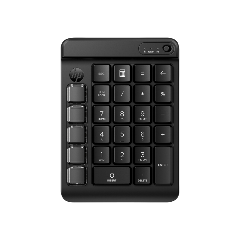 Programovatelná bezdrátová klávesnice HP 430 je mechanická a přizpůsobitelná s devíti programovatelnými klávesami s vyměnitelnými krytkami, které lze konfigurovat podle potřeby.