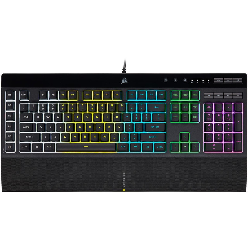 Herní klávesnice CORSAIR K55 RGB PRO rozzáří vaši pracovní plochu pětizónovým dynamickým podsvícením RGB a posílí vaši hru pomocí šesti vyhrazených makro kláves. Krytí IP42 chrání vaši klávesnici před politím a prachu, takže se vaše hra nikdy nezastaví.