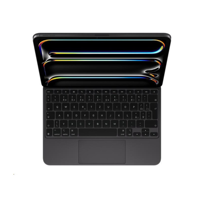 Na Magic Keyboardu k iPadu Pro je radost psát i používat trackpad. Má elegantní nový design s hliníkovou dlaňovou opěrkou a je krásně přenosný. Má řádek 14 funkčních kláves na rychlý přístup k funkcím, jako je nastavování jasu obrazovky, ovládání hlasitosti a dalším, a konektor USB-C na průchozí nabíjení. Díky plovoucí konzolové konstrukci si hladce nastavíš úhel, ve kterém se ti na iPad dívá nejlíp. Nový, větší trackpad s haptickou odezvou je ideální na přesné úkony, jako je úprava tabulek nebo výběr textu. Podporuje ovládání iPadu známými, intuitivními Multi-Touch gesty. iPad Pro je v tomto odolném krytu chráněný z obou stran.