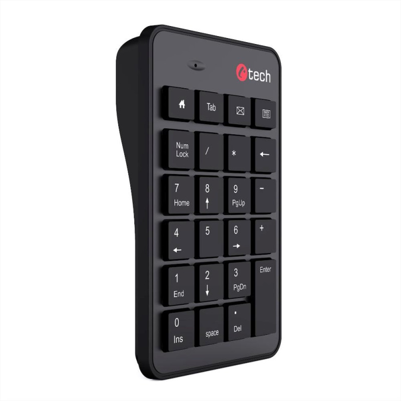 C-Tech KBN-02WS je moderní bezdrátová numerická klávesnice, která je ideálním doplňkem pro každého, kdo často pracuje s čísly a potřebuje zvýšit efektivitu práce. Tato kompaktní klávesnice se může pochlubit celkem 23 klávesami včetně čtyř speciálních kláves pro rychlý přístup, které vám umožní snadno provádět často používané úkony.