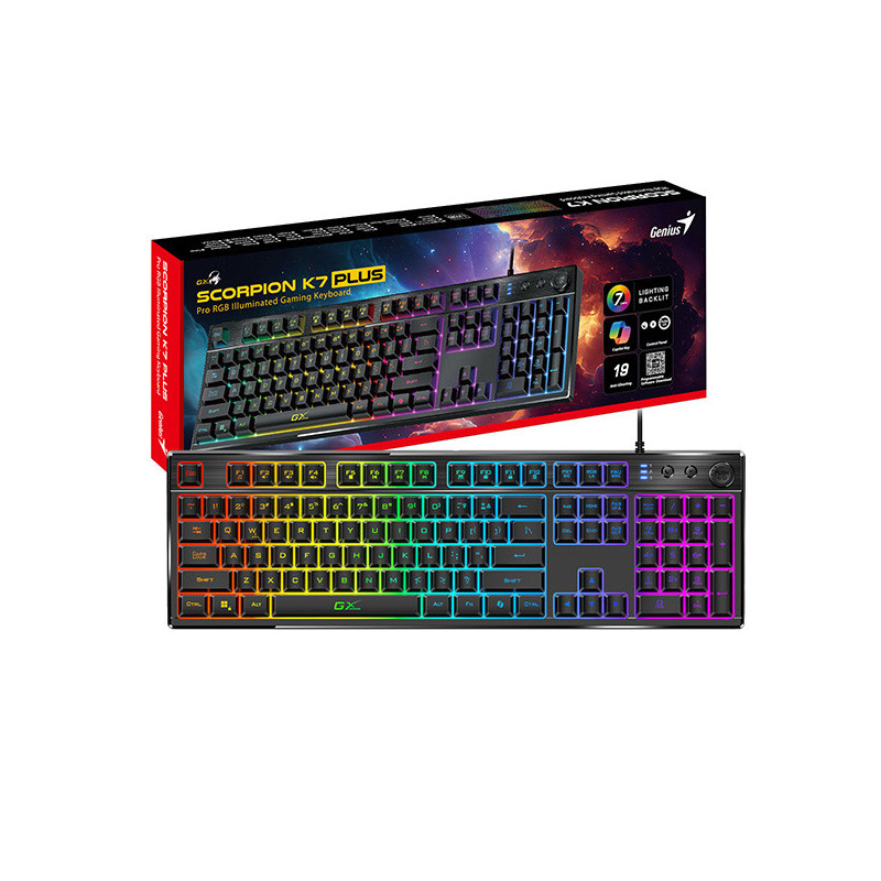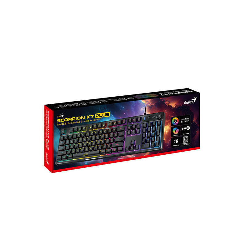 Herní klávesnice Scorpion K7 Plus nabízí programovatelná makro tlačítka a LED podsvícení v sedmi barvách. Samozřejmostí je funkce Anti-ghosting pro 19 kláves, která umožňuje jejich současné stisknutí bez omezení funkčnosti. Zajisté potěší také samostatná klávesa pro vyvolání AI asistenta Windows Copilot (pro Windows 11 a vyšší). Připojení lze jednoduše realizovat skrze 1,8 m dlouhý USB kabel.