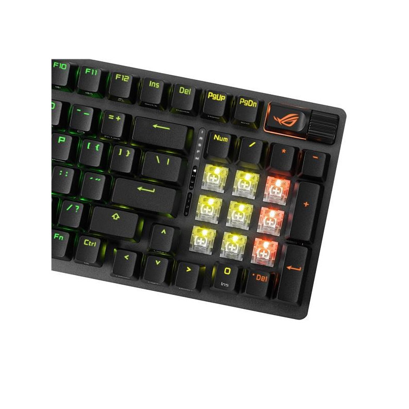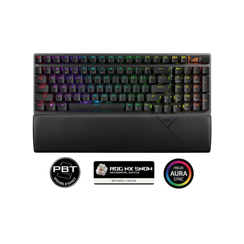 - Vylepšené možnosti psaní: Předem namazané stabilizátory klávesnice produkují menší tření pro hladší stisk kláves a stabilitu pro delší klávesy; odolné krytky kláves ROG PBT doubleshot nebo krytky kláves ABS s UV vrstvou nabízejí prvotřídní pocit a odolnost proti lesku