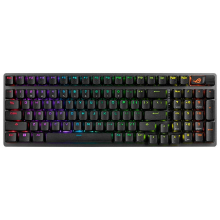 Herní klávesnice ROG Strix Scope II X s mechanickými spínači ROG NX V2 s možností výměny za provozu, pěnovým tlumením zvuku, zdvojenými klávesami PBT nebo ABS s UV povlakem, streamovacími klávesami, multifunkčními ovládacími prvky, třemi úhly sklonu a opěrkou zápěstí.
