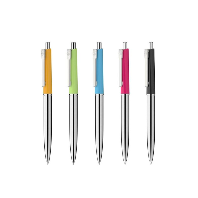 *Klasický tvar kovové kuličkové tužky * Horní část barevná (plast), spodní stříbrná (kov)* Barva horní části pera se může během platnosti katalogu měnit* Šíře stopy: 0,8 mm; modrá náplň *Množství v originálním balení: 50 ks *Náhradní náplně: obj.č. 647.320 (modrá), 647.321 (černá), 647.322 (červená)