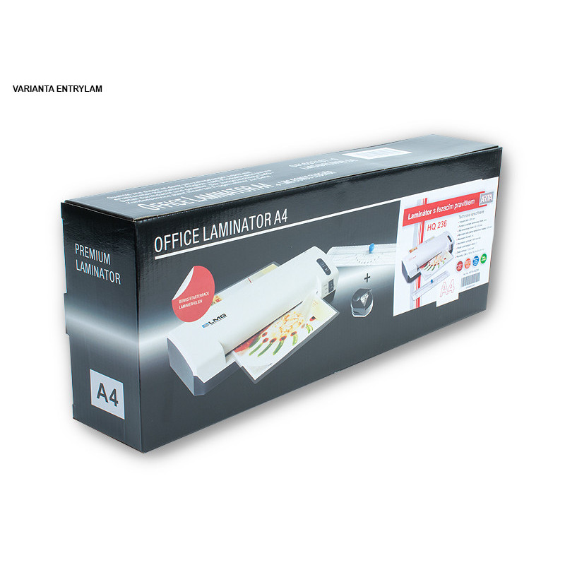 Jednoduchý laminátor do formátu A4, vhodný pro laminování dokumentů v menší kanceláři nebo pro domácí použití. Jeho výhodami jsou jednoduchá obsluha, skladnost a nahřátí stroje do pracovní teploty již za 1,5 minuty.Laminátor umožňuje i studenou laminaci a obsahuje funkci Release, zabraňující uvíznutí dokumentu mezi válci. Dále je ve spodní části laminátoru integrována jednoduchá řezačka na občasné oříznutí papíru i zalaminovaného dokumentu. - Maximální vstupní šíře - 230 mm- Rychlost laminace je 400mm/min- (Náhrada: Entrylam)Více o značce ARTA