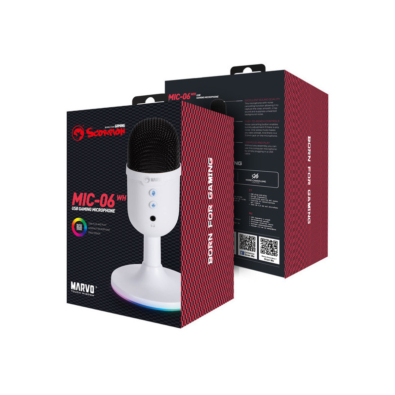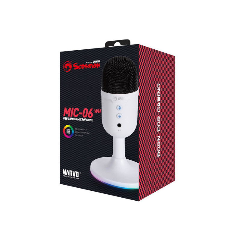 Tento mikrofon má navíc funkci PLUG and PLAY, takže jak název napovídá - pouze zapojíte a můžete ihned používat bez zbytečných instalací. Aby Marvo MIC-06 držel na vašem stole jako přibitý, je tady protiskluzová gumová podložka ze spodní strany.