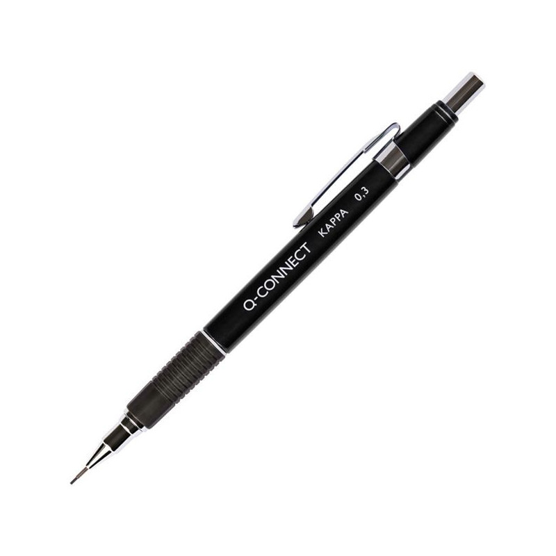 *Plastová tužka s kovovou špičkou a zasunovací vodící trubičkou tuhy* Guma pod stiskacím mechanismem* Pro profesionální použití pro techniky, studenty apod* Balení 12 ks* tuha-0,3 mm, barva-černá