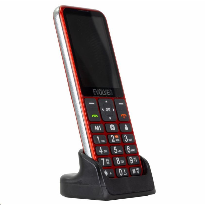 EVOLVEO EasyPhone LT, mobilní telefon pro seniory s nabíjecím stojánkem (červená barva)