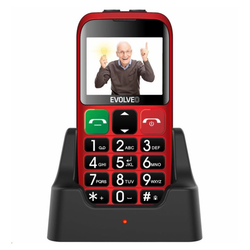 EVOLVEO EasyPhone EB, mobilní telefon pro seniory s nabíjecím stojánkem (červená barva)