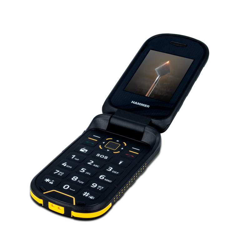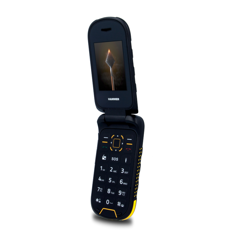 HAMMER Bow je mimořádně praktický a kompaktní telefon. Díky malým rozměrům 111,5 x 57,2 x 21 mm a hmotnosti se snadno vejde do kapsy. Díky velkým tlačítkům a přijímání hovorů otevřením telefonu je používání telefonu velmi pohodlné – a to i v pracovních rukavicích. |