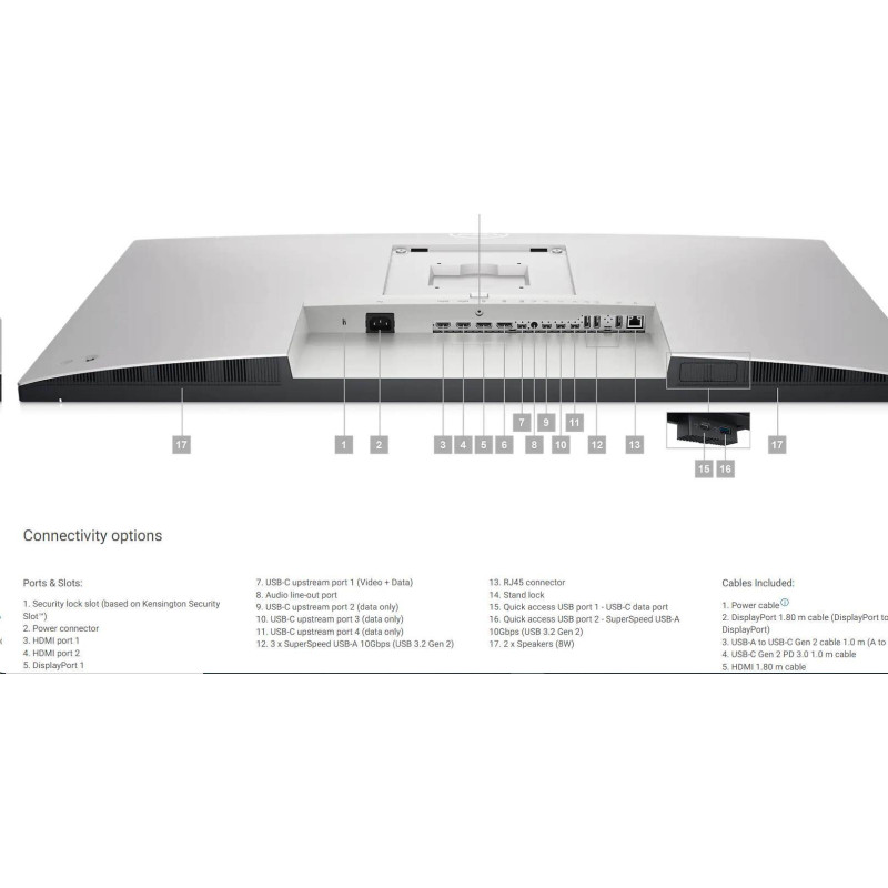 Balení obsahuje: DisplayPort kabel, HDMI kabel, Kabel USB-A na USB-C, USB-C kabel