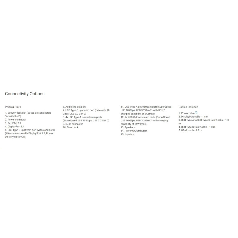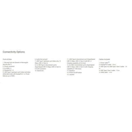 • 1 x USB-C upstream port (data only, 10 Gbps USB 3.2 Gen2)