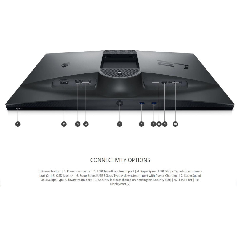 Funkce: Režim FPS, režim RTS, bez rtuti, sklo bez arzenu, režim sportu, režim RPG, režim Game Enhance, technologie Low Blue Light, Dell ComfortView Plus, panel bez blikání, režim konzole, 3 přizpůsobitelné herní režimy, AlienVision