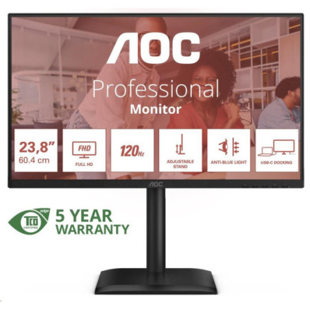 Model 24E4CV nabízí 24" FHD displej s obnovovací frekvencí 120 Hz a hardwarovou technologií potlačení modrého světla, která zajišťuje ostrý a šetrný obraz pro oči. Díky dokovací stanici s napájením 90 W a elegantnímu designu je ideálním řešením pro zvýšení produktivity a zefektivnění pracovního prostoru.