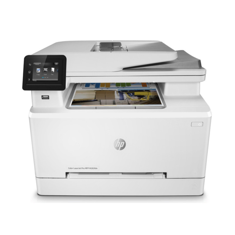 Tiskárna HP Color LaserJet Pro MFP M283fdw; Zaváděcí kazety HP LaserJet: výtěžnost 700 barevných kombinovaných (C/Y/M) stran a 1 350 černobílých stran; Instalační příručka; Napájecí kabel; Kabel USB; Telefonní kabel