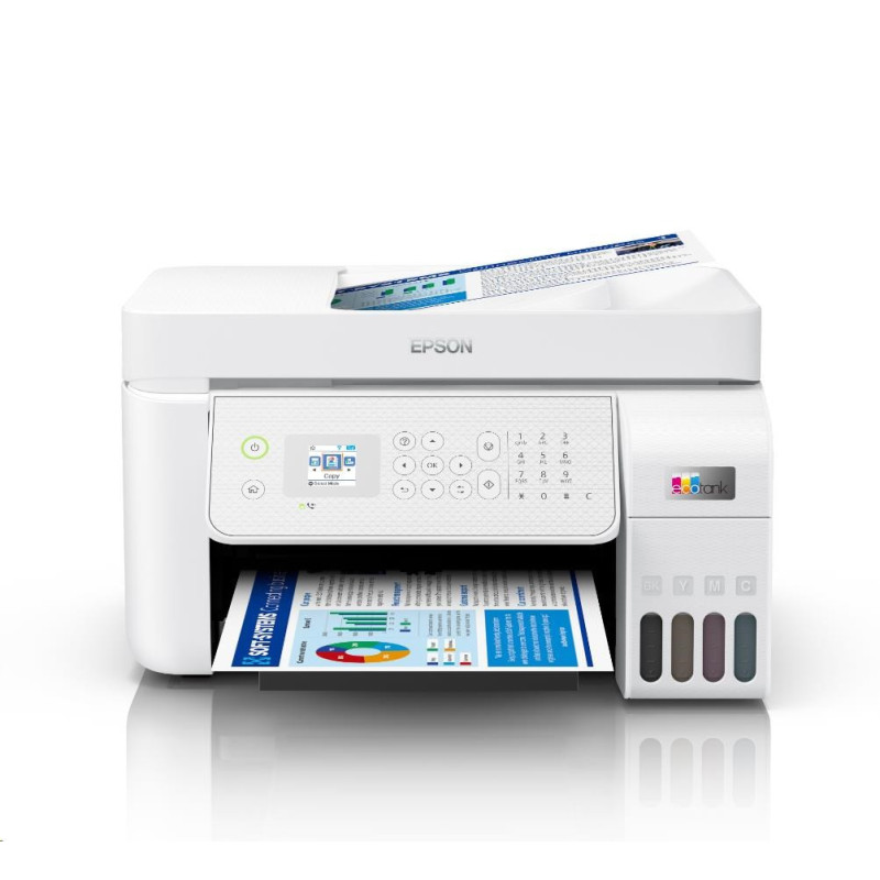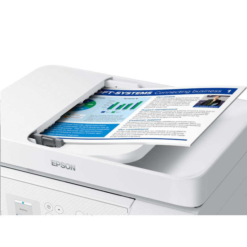 Tato inkoustová tiskárna formátu A4 je ideální pro moderní vytížené domácnosti a malé kanceláře. Součástí balení je jedna sada náhradních lahviček, která odpovídá až 66 kazetám pro mimořádně nízké náklady na tisk jedné stránky. Mezi funkce pro domácnost patří Wi-Fi, Wi-Fi Direct, skenování a kopírování. Mezi další firemní funkce patří Ethernet, automatický podavač dokumentů na 30 stran a fax!