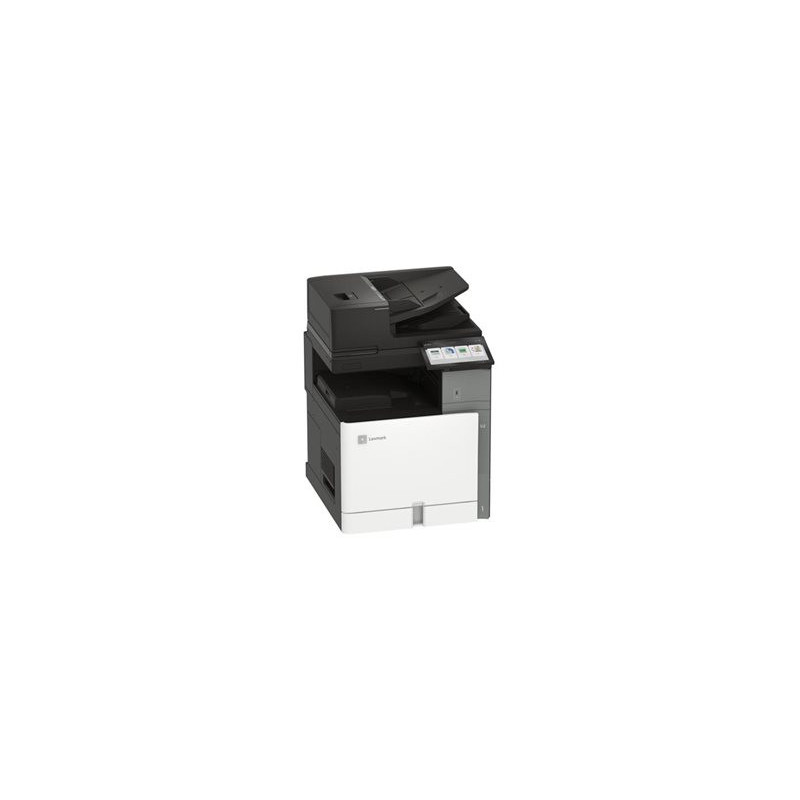 .Part Number 20L8200 Print Technology Color Laser Function Color Copying Color Faxing Color Printing Color Scanning Trusted Platform Module (TPM) The Trusted Platform Module (TPM) is not available in some countries. Workgroup Size Large Workgroup Touch Screen Display Yes Display Lexmark e-Task 10-inch (25 cm) class color touch screen Print Speed (Letter, Black) Up to 35 ppm4 Print Speed (Letter, Color) Up to 35 ppm4 Print Speed (Letter, Black) Duplex Up to 35 spm4 Print Speed (Letter, Color) Duplex Up to 35 spm4 Time to First Page (Black) As fast as 7.1 seconds Time to First Page (Color) As fast as 8.2 seconds Duplex (2-sided) Printing Integrated Duplex Print Resolution, Black 1200 x 1200 dpi 4800 Color Quality Print Resolution, Color 1200 x 1200 dpi 4800 Color Quality Copy Speed (Letter, Black) Up to 35 cpm4 Copy Speed (Letter, Color) Up to 35 cpm4 Copy Speed (Letter, Black) Duplex Up to 35 spm4 Copy Speed (Letter, Color) Duplex Up to 35 spm4 Time to First Copy (Black) As fast as 8.5 seconds Time to First Copy (Color) As fast as 9.5 seconds Reduce / Enlarge Range 25 - 400 % A4/Ltr Simplex Scan Speed (Black) Up to 120/120 sides per minute A4/Ltr Simplex Scan Speed (Color) Up to 120/120 sides per minute A4/Ltr Duplex Scan Speed (Black) Up to 240/240 sides per minute A4/Ltr Duplex Scan Speed (Color) Up to 240/240 sides per minute Scan Area, Maximum 11.69 x 17.0 inches ADF Scan DADF (single pass Duplex) Scanner Type Flatbed scanner with automatic document feeder Scan Resolution, Enhanced 600 x 600 dpi Scan Resolution, Optical 300 x 300 dpi Optical Scanning Resolution 300 X 300 dpi Scan File Formats (Send as) JPEG, JPG PDF Secure PDF TIFF Archival PDF (A-1a, A-1b) Searchable PDF TXT RTF DOCX Scan Destinations e-mail FTP USB Flash drive USB or Network connected computer Processor Speed Quad Core, 1.2 GHz Memory, Standard 4 GB Memory, Maximum 4 GB Hard Disk Intelligent Storage Drive included; Magnetic Hard Disk available Apple Operating Systems Supported Support is provided through AirPrint and AirScan only Citrix MetaFrame Microsoft Windows Server 2012 R2 Datacenter Edition running Citrix XenApp 7.5, 6, 7, 8, 9, 11, 12, 13, 14, 15, 16 Microsoft Windows Server 2012 Datacenter Edition running Citrix XenApp 7.5, 6, 7, 8, 9, 11, 12, 13, 14, 15, 16 Microsoft Windows Server 2012 Foundation running Citrix XenApp 6.0, 6.5 Microsoft Windows Server 2012 Essentials running Citrix XenApp 6.0, 6.5 Microsoft Windows Server 2012 Standard running Citrix XenApp 6.0, 6.5 Linux Operating Systems Supported Ubuntu 20.04 Debian 10 SUSE Linux Enterprise Server 12 SP5 OpenSUSE 15.2 Debian 11 Ubuntu 22.04 Fedora 36 Fedora 37 SUSE Linux Enterprise Server 15 SP4 OpenSUSE 15.4 Red Hat Linux 8.7 Red Hat Linux 9.1 Microsoft Windows Operating Systems Supported Windows Vista Windows Vista x64 Windows Server 2008 Windows Server 2008 x64 Windows Server 2008 running Terminal Services Windows Server 2008 x64 running Terminal Services Windows 7 Windows 7 x64 Windows Server 2008 R2 Windows Server 2008 R2 running Terminal Services Windows 8 Windows 8 x64 Windows Server 2012 Windows 8.1 Windows Server 2012 R2 Windows 10 Windows Server 2016 Windows Server 2019 Windows Server 2022 Windows 11 Novell Operating Systems Supported Novell NetWare 6.5 Open Enterprise Server Novell Open Enterprise Server 2 (SP3) on SuSE Linux Enterprise Server 10 SP4 (x86 and x64) 3 Novell Open Enterprise Server 11 (SP3) on SuSE Linux Enterprise Server 11 SP4 (x86 and x64) Novell Open Enterprise Server 11 (SP3) on SuSE Linux Enterprise Server 12 SP1 (x86 and x64) Novell Open Enterprise Server 15 (SP1) on SuSE Linux Enterprise Server 11 SP4 (x86 and x64) Other Operating Systems Supported Virtually any platform supporting TCP/IP Included Paper Handling 550-Sheet Tray 150-Sheet Multipurpose Feeder 500-Sheet Output Bin Optional Paper Handling 550-Sheet Tray Offset Stacker 500-Sheet Staple Offset Finisher 2 x 550-Sheet Tray 2000-Sheet Tandem Tray Cabinet 1,500-Sheet High-Capacity Tray Paper Transport Unit Folding Paper Transport Unit 1,250-Sheet Staple Hole Punch Finisher 2,250-Sheet Booklet Staple Hole Punch Finisher Paper Input Capacity, Standard Up to 700 pages 20 lb or 75 gsm bond Paper Input Capacity, Maximum Up to 4750 pages 20 lb or 75 gsm bond Paper Output Capacity, Standard Up to 500 pages 20 lb or 75 gsm bond Paper Output Capacity, Maximum Up to 2650 pages 20 lb or 75 gsm bond Paper Weight Range Supported - Standard Tray (lb.) 16 - 80 lb. Paper Weight Range Supported - Multipurpose Feeder (lb.) 16 - 80 lb. A3 / 11 x 17 Yes ADF 300-Sheet Automatic Document Feeder ADF Paper Input Capacity Up to 300 pages 20 lb or 75 gsm bond ADF Paper Output Capacity Up to 300 pages 20 lb or 75 gsm bond Finishing Option Yes Finishing Functions Offset stacking Stapling Hole punching Number of Paper Inputs, Standard 2 Number of Paper Inputs, Maximum 6 Media Types Supported Card Stock Envelopes Glossy Paper Labels Plain Paper Vinyl Labels Refer to the Paper & Specialty Media Guide Media Sizes Supported 10 Envelope 7 3/4 Envelope 9 Envelope A3 A4 A5 B5 Envelope C4 Envelope C5 Envelope DL Envelope Hagaki Card Executive Folio JIS-B4 JIS-B5 Ledger Legal Letter Statement Oficio A6 SRA3 Standard Ports USB 2.0 Specification Hi-Speed Certified (Type B) Gigabit Ethernet (10/100/1000) Front USB 2.0 Specification Hi-Speed Certified port (Type A) 802.11a/b/g/n/ac + Apple iBeacon Optional Local Ports Internal RS-232C serial Internal 1284-B Bidirectional Parallel Optional Network Ports MarkNet N8230 Fiber Ethernet Print Server Direct USB Yes Ethernet Network Yes Wireless Yes Wireless Network WPA2™ - Personal WPA™ and WPA2™ - Personal 802.1x Authentication: MD5, MSCHAPv2, LEAP, PEAP, TLS, TTLS Network Protocol Support TCP UDP IPSEC w/ IPv4 IPSEC w/ IPv6 ICMP IGMP IPv4 IPv6 Network Printing Methods Direct IP (Port 9100) Enhanced IP (Port 9400) FTP IPP 1.0, 1.1, 2.0 (Internet Printing Protocol) Microsoft Web Services WSD Pull Printing Thin Print LPR Network Management Protocols WINS AP