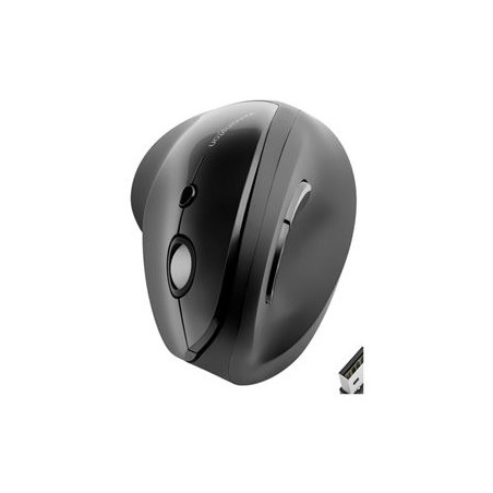 Tvarovaný přirozený sklon (46,7 °) udržuje zápěstí v neutrální poloze jako při potřásání rukou, odbourává tak stlačování měkké tkáně. Používání vertikální myši pomáhá předcházet syndromu karpálního tunelu.Speciálně tvarované obruba poskytuje malíčku úplnou oporu a umožňuje plynulejší pohyb větší skupiny svalů.Počítačová myš je plně vybavena rolovacím kolečkem, levým a pravým tlačítkem, tlačítky dopředu a zpět a přepínačem rozlišení optického senzoru (800/1000/1200/1600 DPI).Stačí jen připojit USB nano přijímač a můžete začít myš používat bezdrátově až na vzdálenost 20 metrů. Vertikální bezdrátová optická myš je vhodná jako myš k PC i jako myš k notebooku.Rozsvícení červené kontrolky vám sdělí, že je čas na výměnu baterie. Při jejím rozsvícení máte dostatek času na to, abyste baterii včas vyměnili. Jedna AA baterie vám vydrží až po dobu jednoho roku používání myši