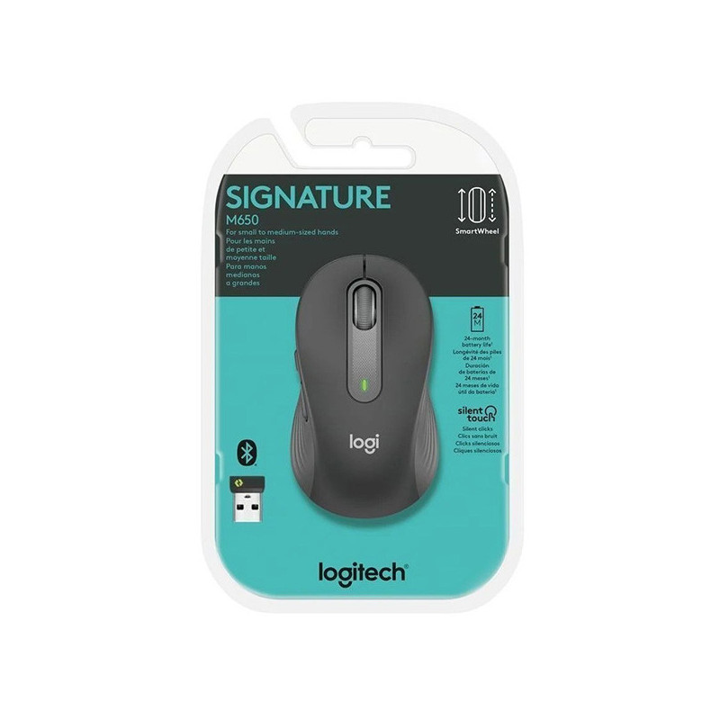 Připojte se během okamžiku prostřednictvím technologie Bluetooth Low Energy nebo přijímače Logi Bolt USB. Získejte silné a spolehlivé bezdrátové připojení na vzdálenost až 10 metrů. Myš Signature M650 je kompatibilní s více platformami – Windows®, macOS, Linux®, iPadOS, Android™ – a disponuje certifikátem Kompatibilní s Chromebook™.