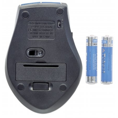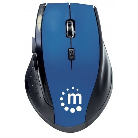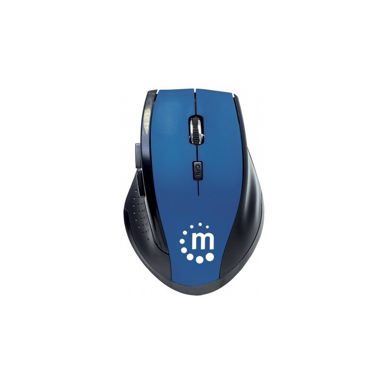 The Manhattan Curve wireless optical mouse combines modern design with advanced precision and high-stabilization performance. Its top-mount push-button instantly shifts resolution from 800, 1200 and 1600 dpi to suit a wide range of applications, including routine computing tasks or computer games and editing requiring a fine touch. Its full-sized shape and five-button configuration provide direct access to essential commands with minimal wrist movement. A non-slip texture applied to critical surfaces helps provide a secure, comfortable grip. The remarkably small yet powerful USB micro receiver with 2.4GHz technology provides an effective range of up to 10 m (33 ft.) and stores in a special on-board compartment or remains installed for true wireless convenience. Automatic power management helps maintain proper battery levels for reliable operation. Plug-and-play capability and Windows and Mac OS compatibility offer quick and easy installation. The Curve wireless optical mouse requires little maintenance for long-term, dependable service