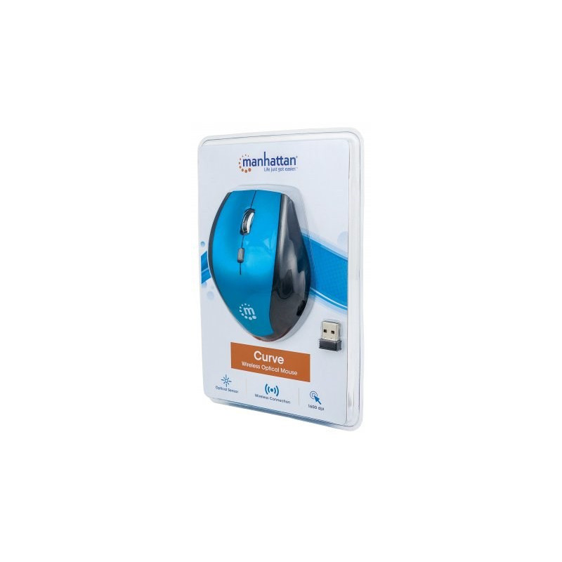MANHATTAN Myš Curve, USB, optická, bezdrátová, 5-tlačítková, 1600 dpi, modro-černá