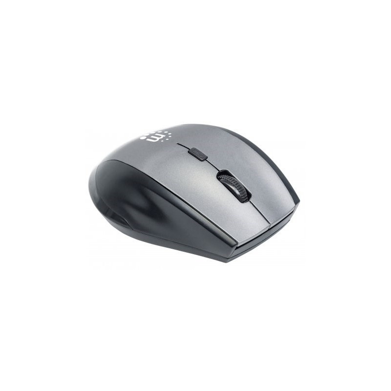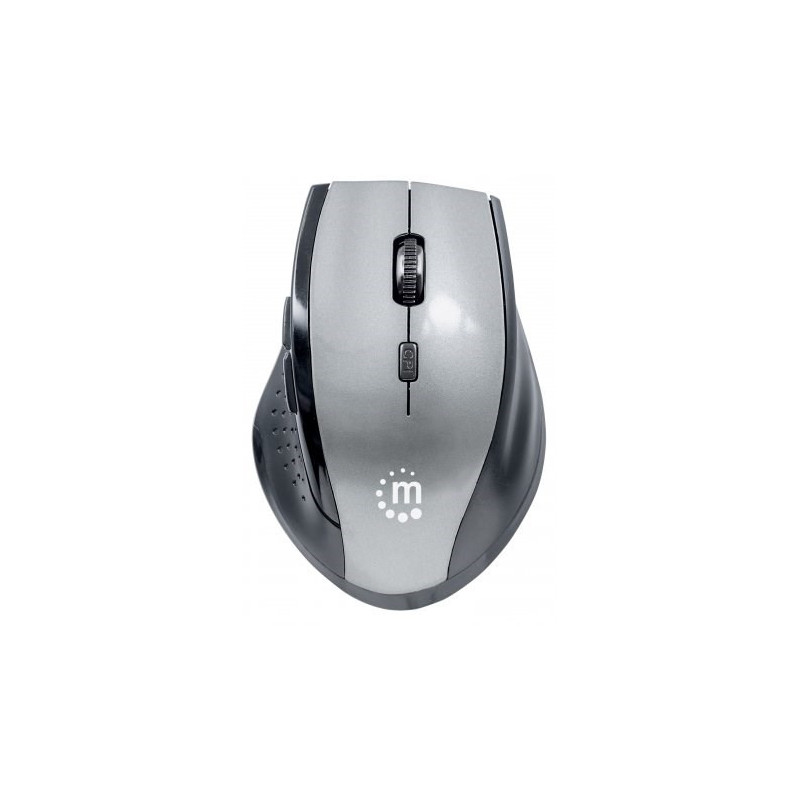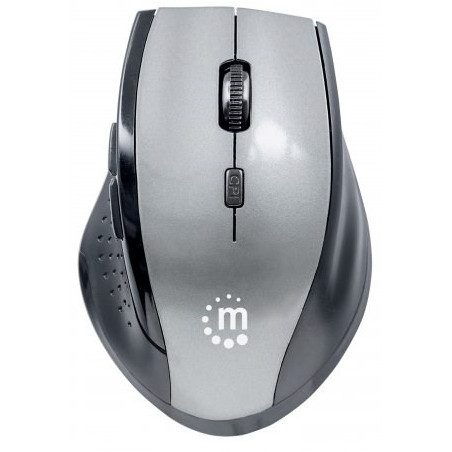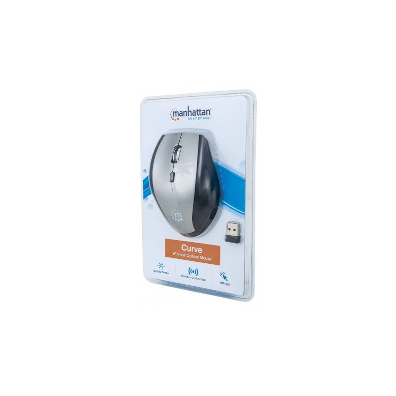 The Manhattan Curve wireless optical mouse combines modern design with advanced precision and high-stabilization performance. Its top-mount push-button instantly shifts resolution from 800, 1200 and 1600 dpi to suit a wide range of applications, including routine computing tasks or computer games and editing requiring a fine touch. Its full-sized shape and five-button configuration provide direct access to essential commands with minimal wrist movement. A non-slip texture applied to critical surfaces helps provide a secure, comfortable grip. The remarkably small yet powerful USB micro receiver with 2.4GHz technology provides an effective range of up to 10 m (33 ft.) and stores in a special on-board compartment or remains installed for true wireless convenience. Automatic power management helps maintain proper battery levels for reliable operation. Plug-and-play capability and Windows and Mac OS compatibility offer quick and easy installation. The Curve wireless optical mouse requires little maintenance for long-term, dependable service