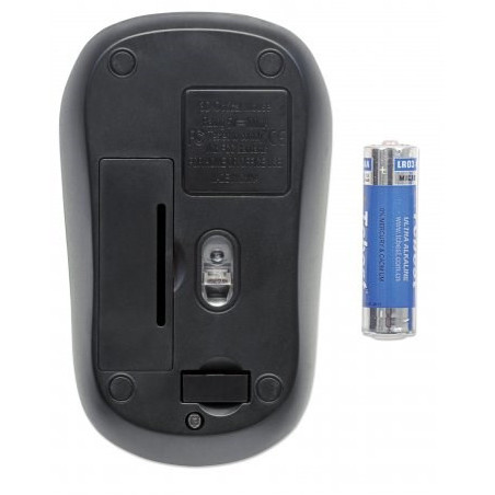 The Manhattan Success Wireless Optical Mouse combines modern design with advanced precision and performance. Its full-sized shape and three-button configuration provide direct access to essential commands with minimal wrist movement. A non-slip texture applied to critical surfaces helps provide a secure, comfortable grip. The remarkably small yet powerful USB micro receiver with 2.4GHz technology provides an effective range of up to 10 m (33 ft.) and stores in a special onboard compartment or remains installed for true wireless convenience.