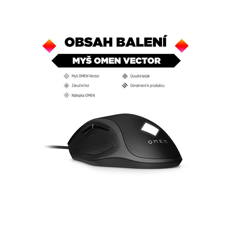 Co je obsaženo v krabici: Myš OMEN Vector Gaming Mouse; Dokumentace