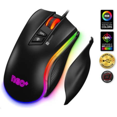 Profesionální gamingová myš NEO+ SERIES edition pro hráče počítačových her s osmi nastavitelnými tlačítky, precizním optickým senzorem a plnou podporou uživatelských maker.