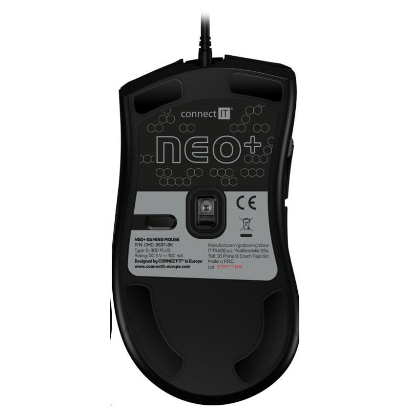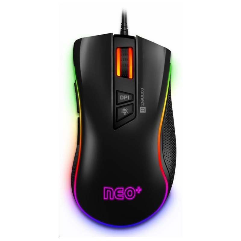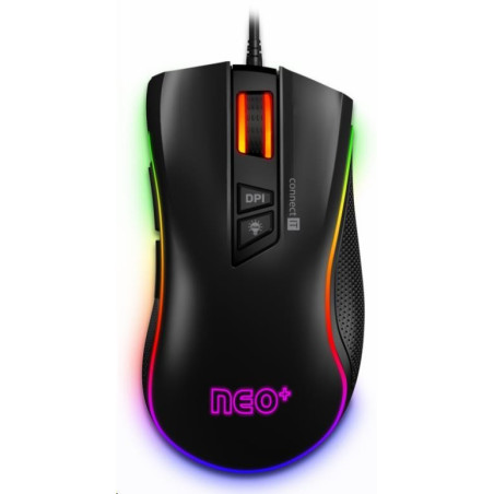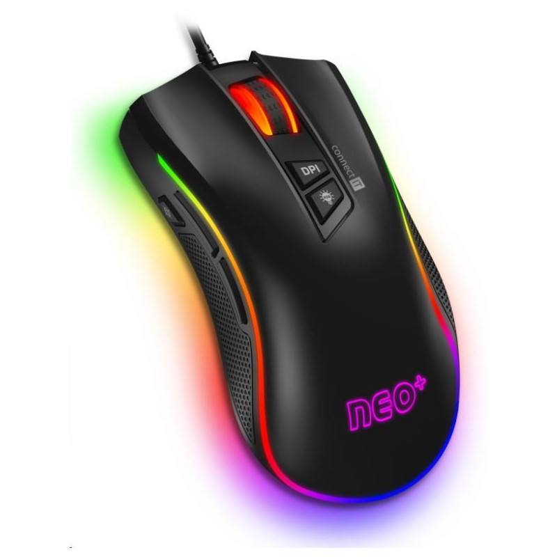 Kromě běžných funkcí je tato myš unikátní nastavitelnou velikostí a to pomocí odnímatelné pravé bočnice. Takto si myš přizpůsobíte svým potřebám. Část myši je pokryta povrchem "honeycomb grip" pro stabilnější a pevnější úchop i při dlouhodobém hraní. K této myši je dodáván arch promo samolepek "CONNECT IT NEO" a software ke stažení zcela zdarma na stránkách www.connectit-europe.com. Samozřejmostí je u této série prémiový oplet přívodního kabelu a pozlacený USB konektor.