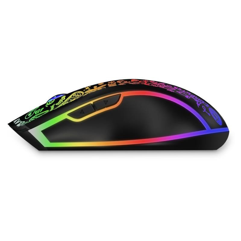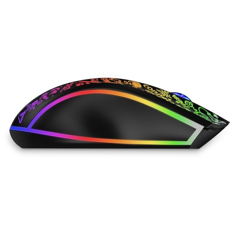 Profesionální bezdrátová gamingová myš DOODLE 3 pro hráče počítačových her s Rainbow podsvícením. Dodávaný SW s četnými nastaveními podporuje uživatelská makra, 5 uživatelských profilů a 6 programovatelných tlačítek včetně posuvného kolečka. Precizní optický senzor má nastavitelnou citlivost až na 4800 DPI. Myš využívá technologie jako povrchový RubberGrip pro eliminaci klouzavosti dlaně, UltraSlides Black pojezdy pro maximální možnou rychlost na podložce. Nechybí ani technologie AutoPowerSave šetřící kapacitu baterie. Software je zdarma ke stažení na stránkách www.connectit-europe.com. Samožřejmostí je pozlacený USB Nano přijímač a dodávaný nabíjecí kabel.